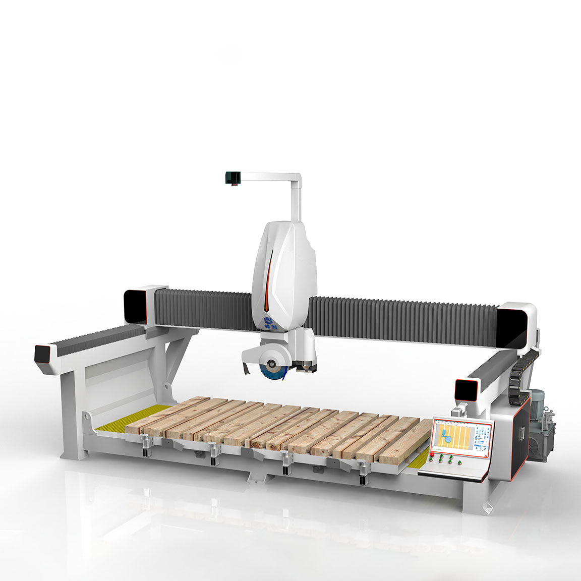 | Control System | Proprietary bridge saw customisation system (Touchscreen + Manual Input) |