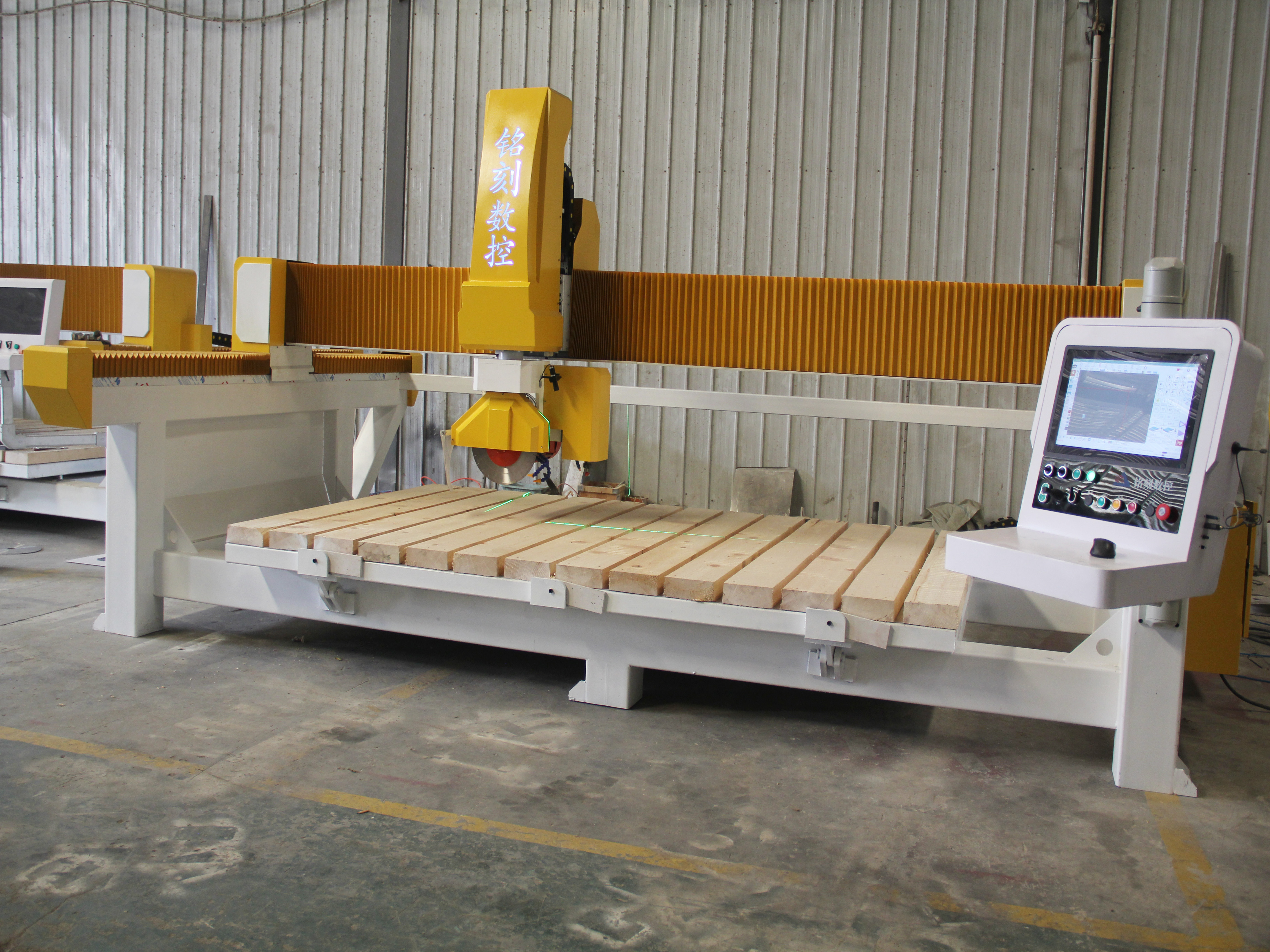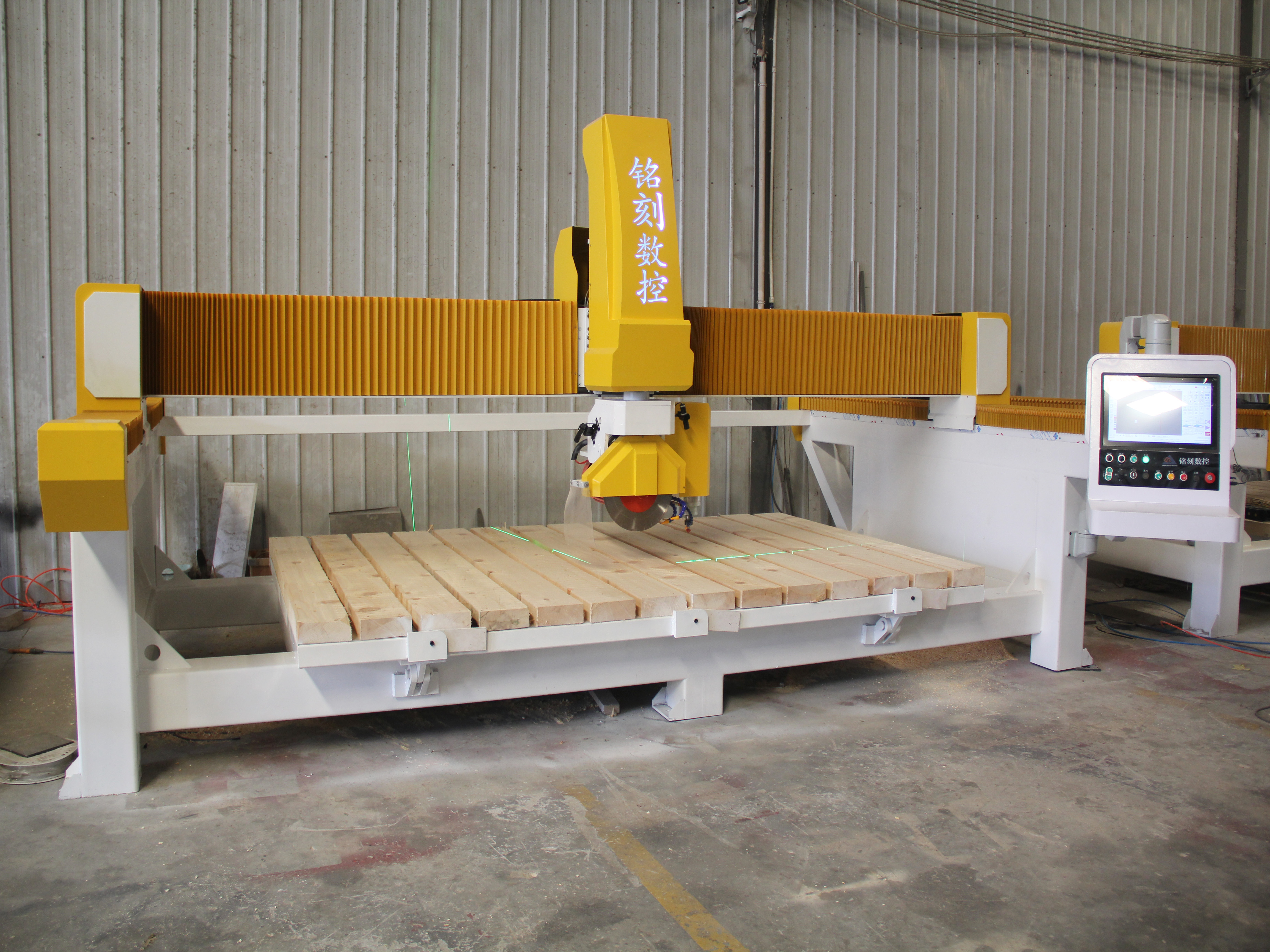 | Control System | Proprietary bridge saw custom system (touchscreen, manual input) |